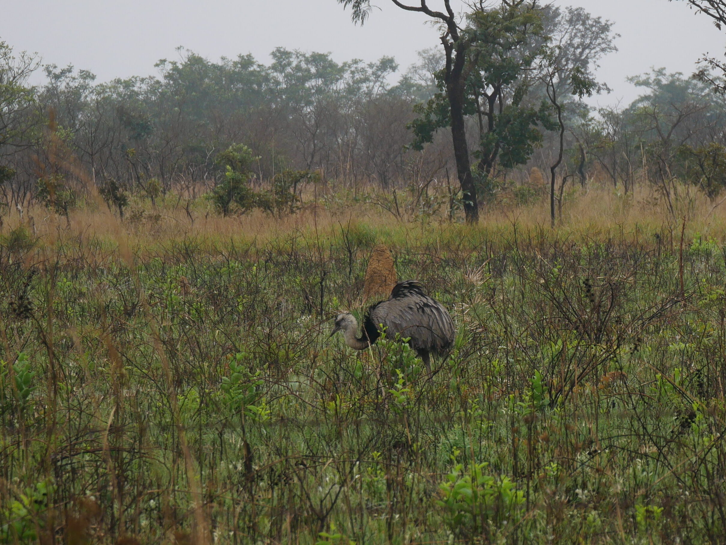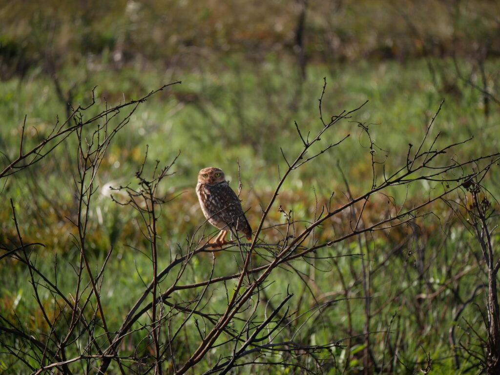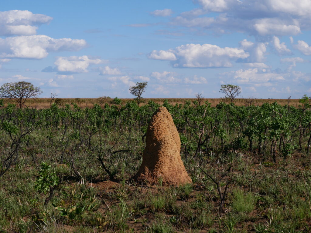 En route, we chose to visit Emas National Park with the hope of spotting the elusive maned wolf. Emas is a protected area of Cerrado habitat and a UNESCO World Heritage Site in central Brazil1. The national park is a vital refuge for Cerrado fauna in an otherwise heavily farmed landscape, as well as an important headwater source due to its location on the Central Brazilian Plateau. A number of important rivers are born within the national park boundary, including Rio Araguaia, which eventually flows into the Amazon2. Arriving at the entrance to the national park in the early on a Sunday afternoon, we unfortunately learnt that the park was shut the next day (and every Monday, which we hadn’t realised!). As we had a booking for our lodge in the Pantanal fast approaching, we therefore just had that afternoon to explore.