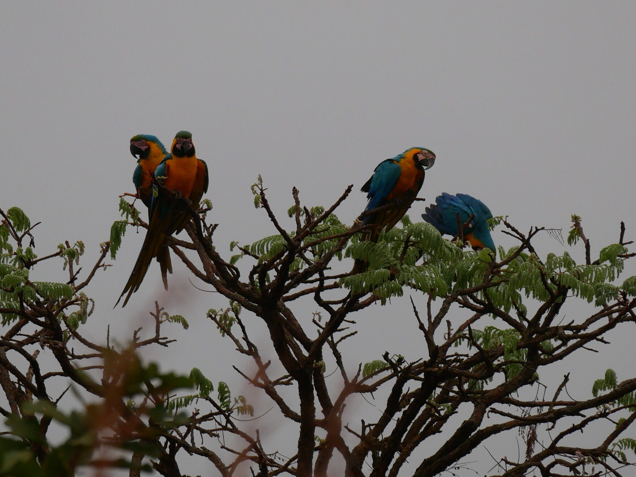 The next morning we woke to thick cloud and mist, and the sound of blue and yellow macaws in the trees just outside the van! We were very happy to see these brilliantly bright blue birds! We had a relaxed morning watching the birds, and chatting with the ranger that lives by the entrance to the park. He told us stories and showed us photos of some of the wildlife that lives in the park and visits the area by his house. He also told us all about the importance of the Cerrado ecosystem, and explained how humans have altered the land across much of the Cerrado to make it suitable for farming, sadly at the expense of the environment, the delicate Cerrado ecosystem and its wildlife. It was a really interesting chat, and his wife even offered us some homemade pão de queijo (Brazilian cheese bread).